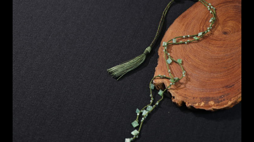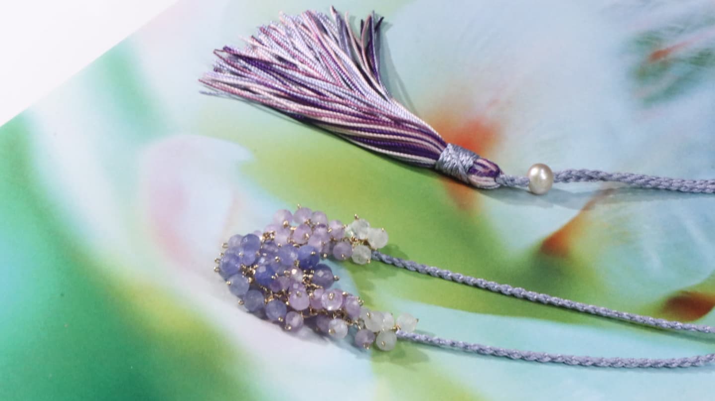 一粒一粒がとても美しく、丁寧に編み込まれているのも優しい。